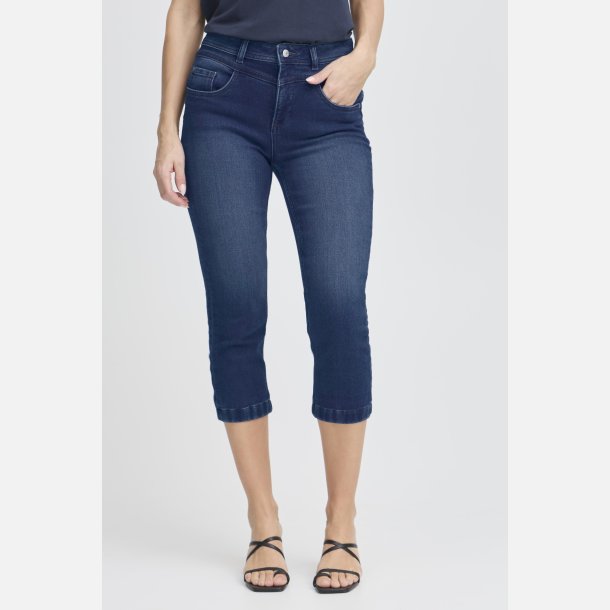 Flotte mørkeblå capri jeans fra Fransa. De har simple lommer for og bag, og fine detaljer i syningerne.